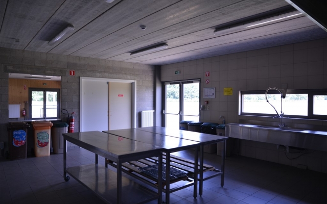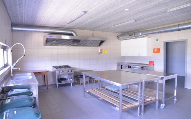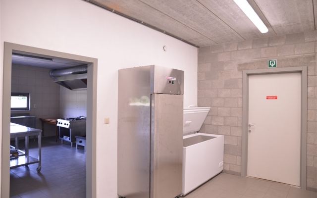 Keuken (46m²) en bijkeuken (18m²): 2 grote vrijstaande gasvuren, fornuis met 4 gasvuren, koeltoog, koelkast, 2 vrieskisten